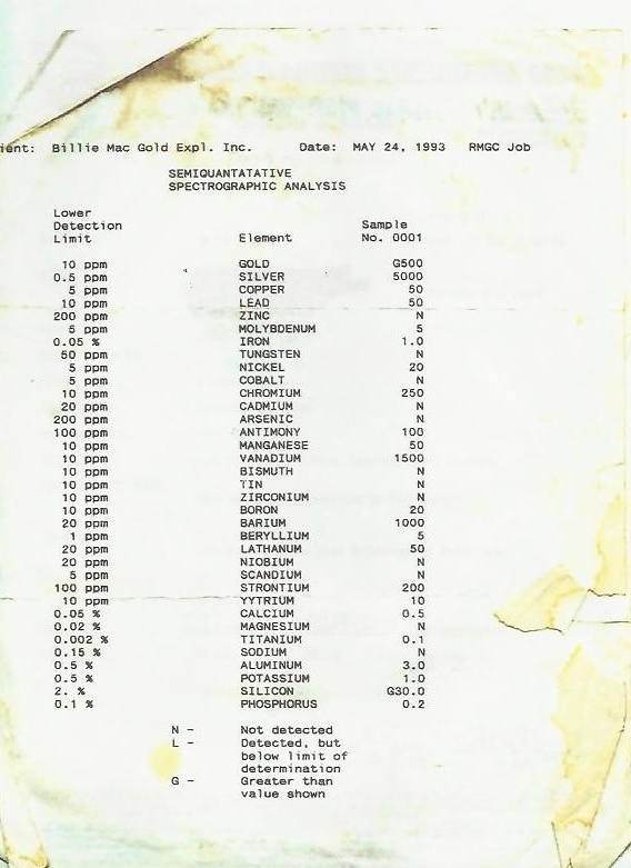 COMPLETE ASSAYS MAY BE OBTAINED BY SIGNING OF CONFIDENTIALITY AGREEMENT